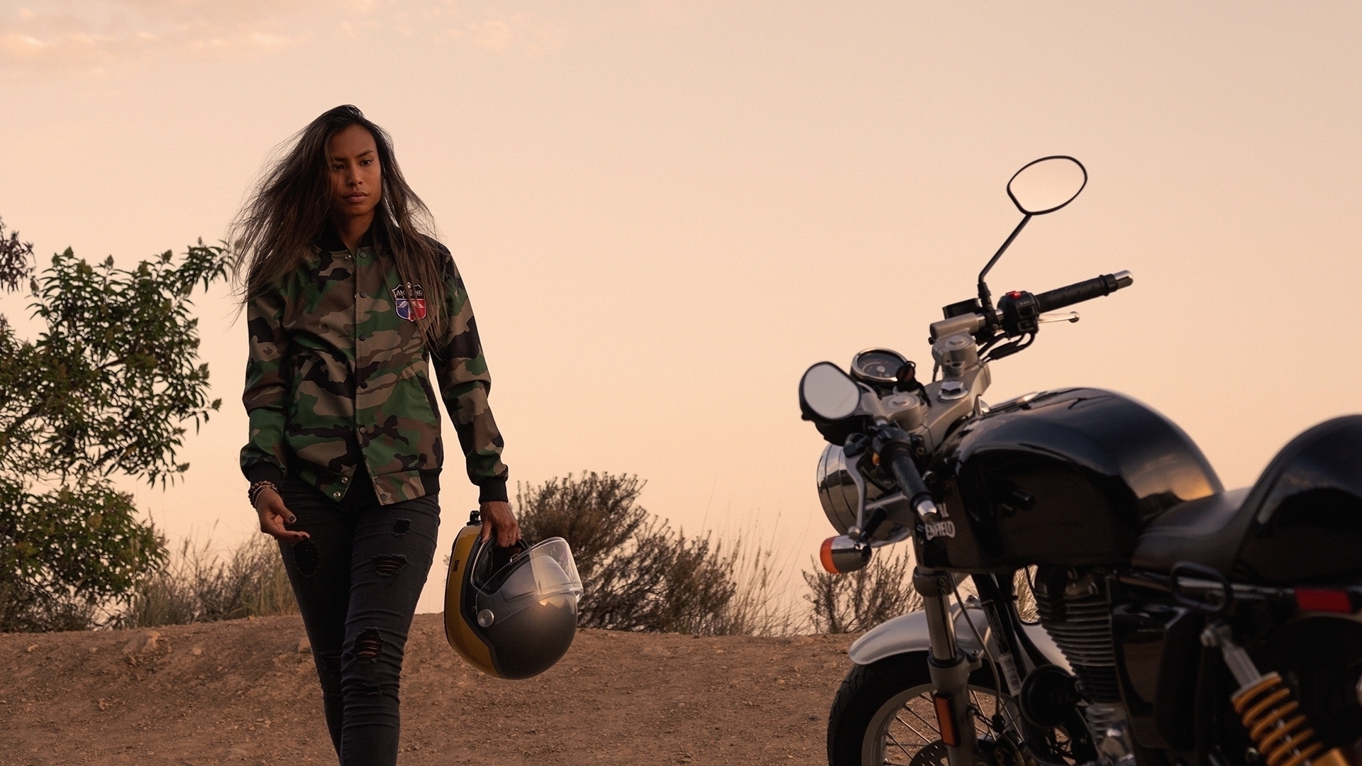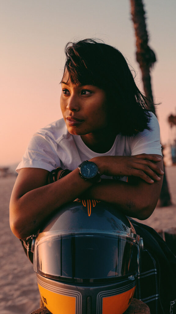 La première chose qu’elle demande en arrivant : Pouvoir conduire une moto sur la base. Il y a plusieurs procédures à suivre pour que cela soit possible, mais une fois qu’elle a obtenu la permission, Diane et sa Royal Enfield font chaque week-end le tour du vaste Camp Pendleton, le plus grand centre d’entraînement expéditionnaire de la côte ouest.